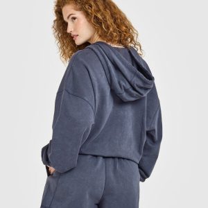 Raw Lounge Oversized Zip Hoodie Washed True Blue