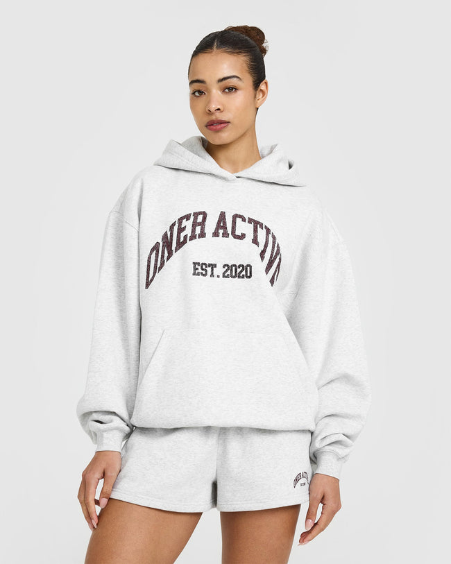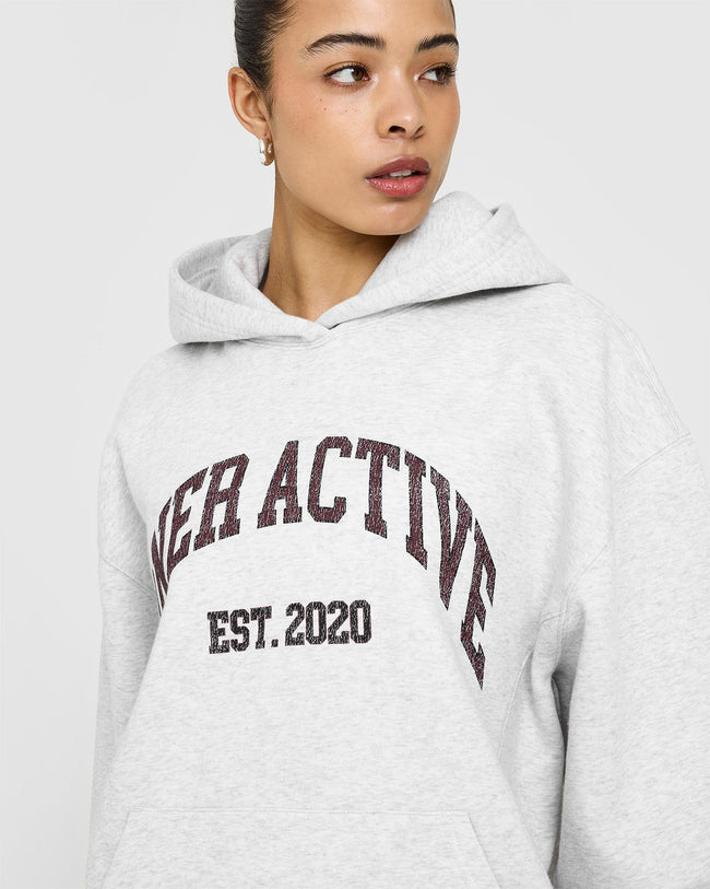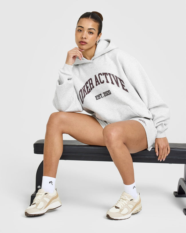 Foundations Oversized Hoodie With Large Printed Graphic Light Grey Marl