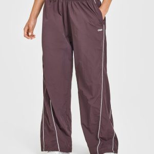 Oversized Piped Woven Straight Leg Track Bottoms Deep Umber Brown