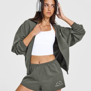 Lightweight Shorts with Graphic Dark Khaki
