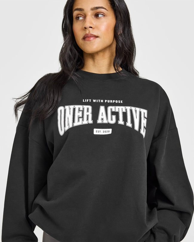 Lightweight Sweatshirt with Athletic Graphic Soft Black