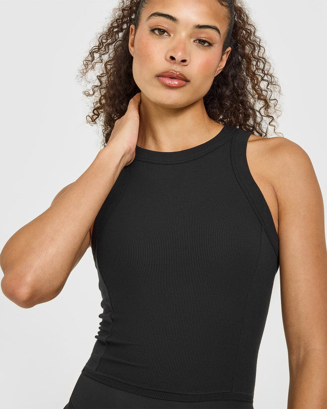 Mellow™ Rib High Neck Mid Tank Top Black