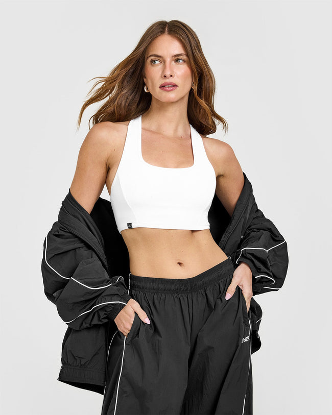 | Built-in bra shelf with removable, dyed-to-match pads | |