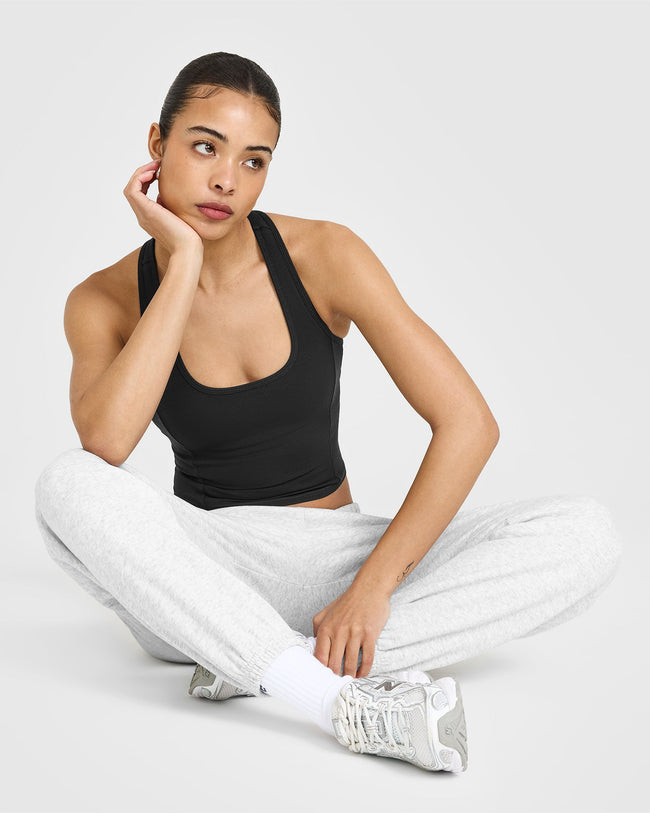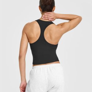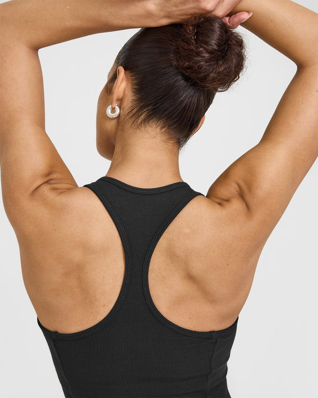 Mellow™ Rib Square Neck Mid Vest with Built in Bra Shelf Soft Black