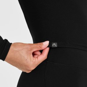 Mellow™ Rib V Neck Mid Long Sleeve Top Black