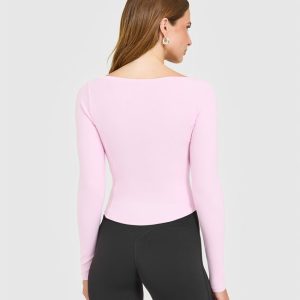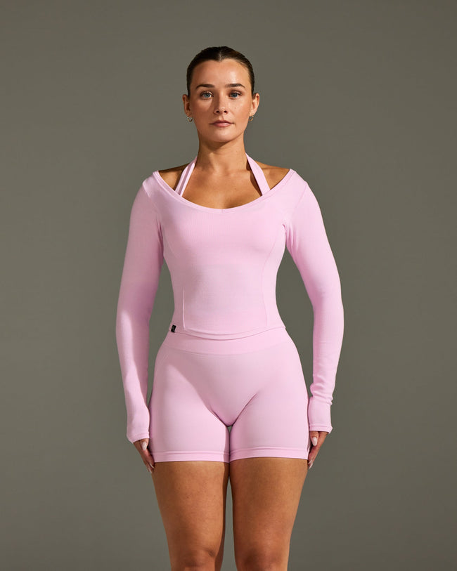 Mellow™ Rib V Neck Mid Long Sleeve Top Chalk Pink
