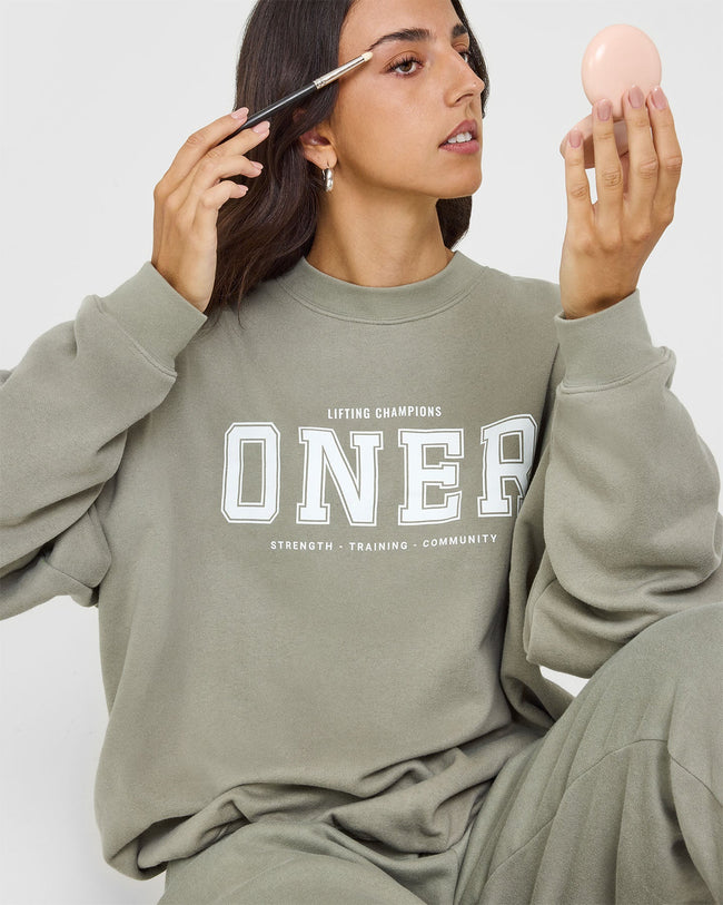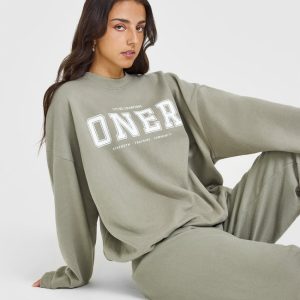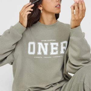Mid Weight Sweatshirt With Printed Logo Soft Sage Green
