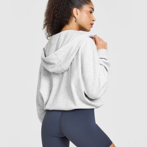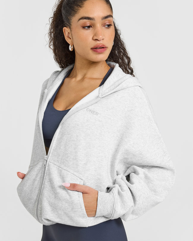 Mid Weight Zip Through Hoodie Light Grey Marl