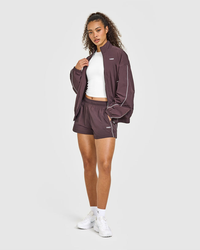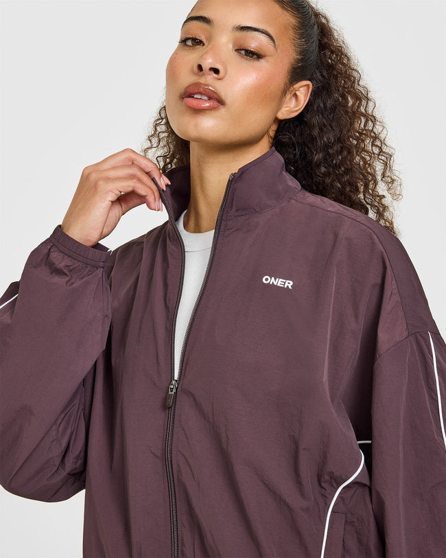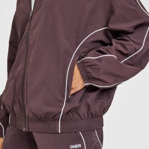 Oversized Piped Woven Track Jacket Deep Umber Brown