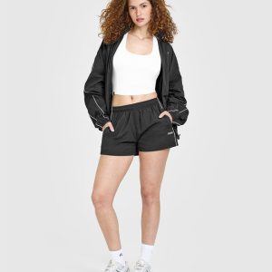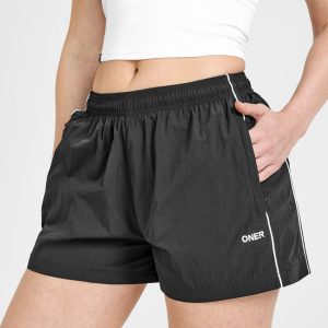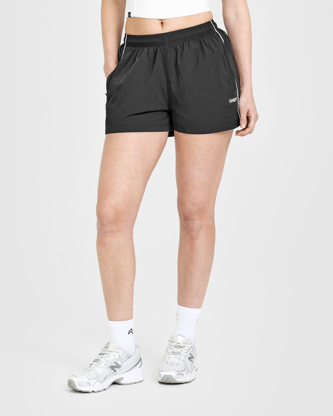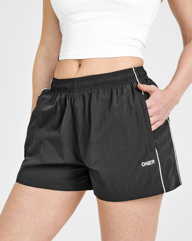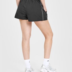 Oversized Piped Woven Track Shorts Soft Black