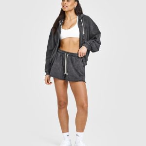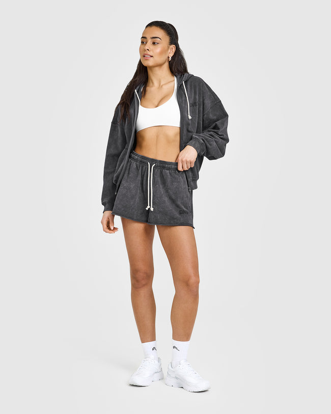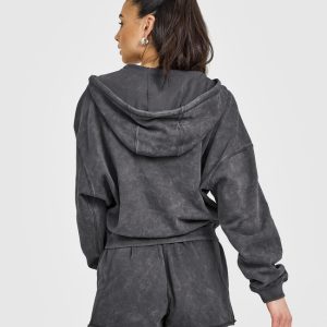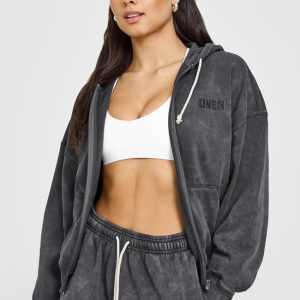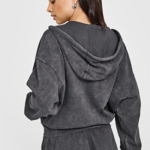 Lightweight Zip Through Hoodie With Athletic Graphic Soft Black