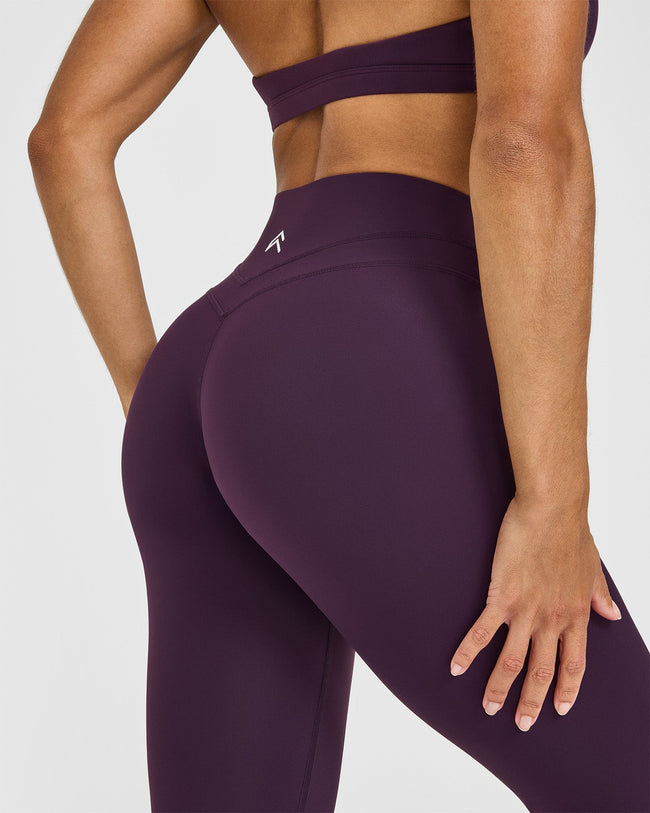Unified High Waisted Leggings White Logo Blackberry Purple
