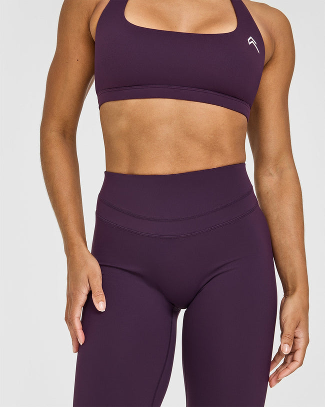 Unified High Waisted Leggings White Logo Blackberry Purple