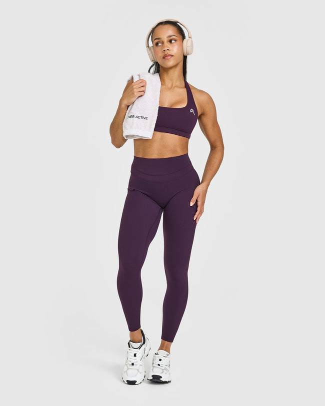 Unified High Waisted Leggings White Logo Blackberry Purple